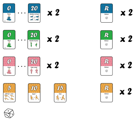- Piocher une carte et effectuer l’action : le numéro de la carte = le nombre de répétitions.